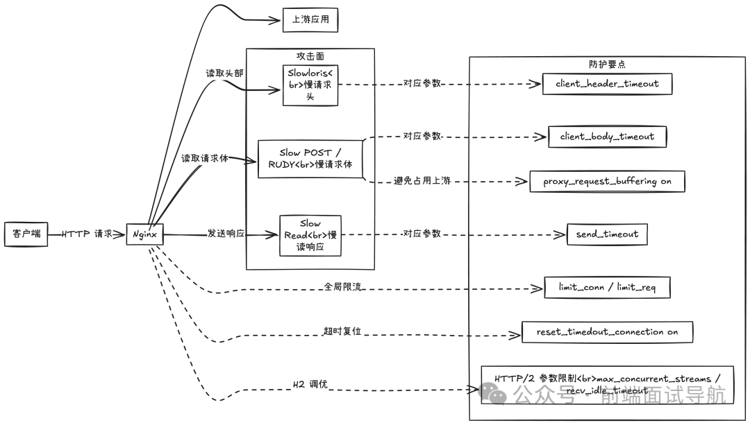 慢速攻击是一类用很少带宽就能长期占用服务器连接/资源的攻击方式。攻击者通过非常慢地发送请求头或请求体,或极慢地读取服务器响应,让每个连接都“挂着不结束”,从而耗尽Web服务器(或上游应用、数据库、代理)的并发与缓冲资源。典型类型主要有以下几个方面:Slowloris(慢请求头):客户端以极低速率分片发送HTTP头部,始...