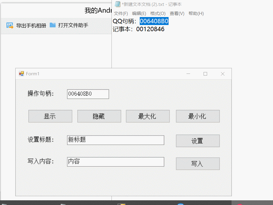 还是上面写的问题,QQ没有输入框的句柄,所以输入这里我使用了记事本来实现效果,当然如果是winform程序,一般也是没问题的。更多的SendMessage的用法,大家也可以自行去百度。