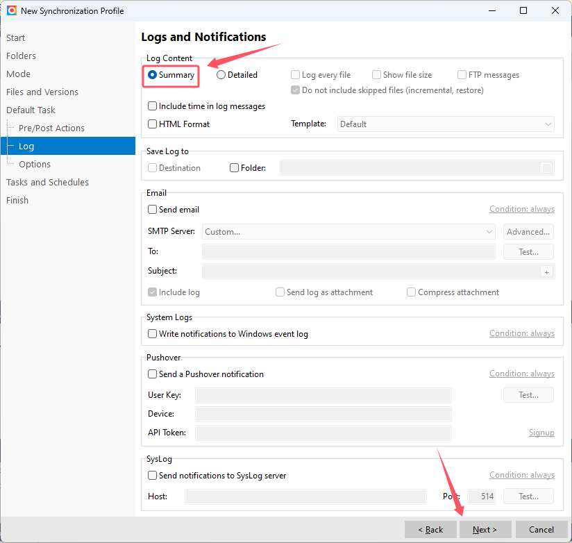 11、Log,选中“Summary”(概况即可,不需要记录详细内容),然后点击“Next
