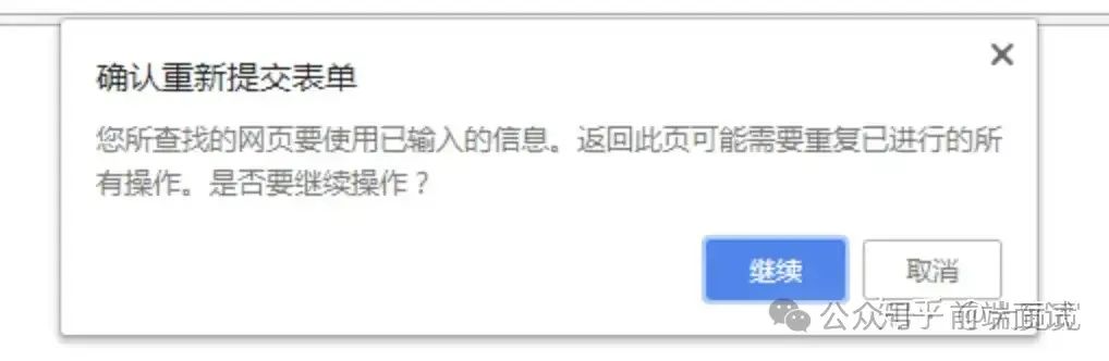 此外如果尝试重新执行POST请求,浏览器也会弹一个框提示下这个刷新可能会有副作用,询问要不要继续。