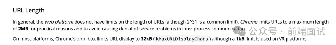 Chrome的URL限制是2MB,见https://chromium.googlesource.com/chromium/src/+/master/docs/security/url_display_guidelines/url_display_guidelines.md
