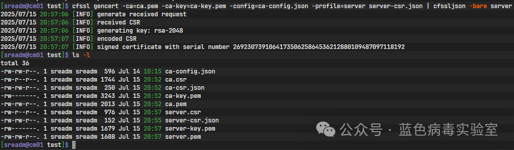 现在所有准备工作都已完成,可以使用CA证书来签名生成服务器证书了: