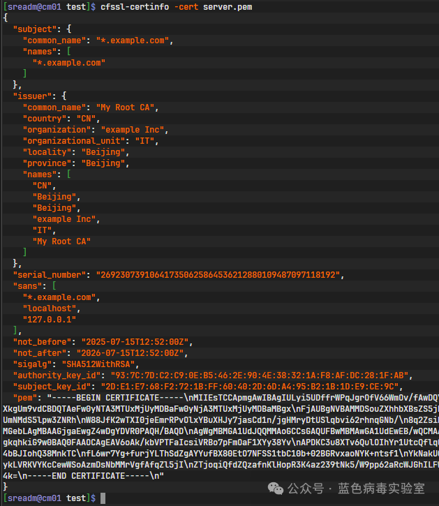 我们可以使用cfssl-certinfo工具来查看生成的证书信息.
