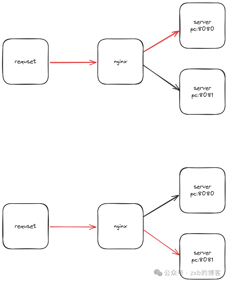 nginx默认的负载均衡算法就是轮询,字面意思,nginx将请求按照顺序获取不同server之间的响应
