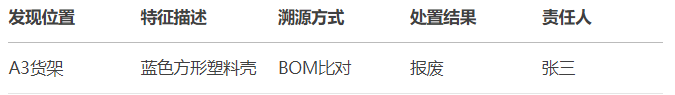 • 示例:某电子厂发现无标签IC芯片,用防静电盒转移至红色隔离柜,避免混入正常库存。
