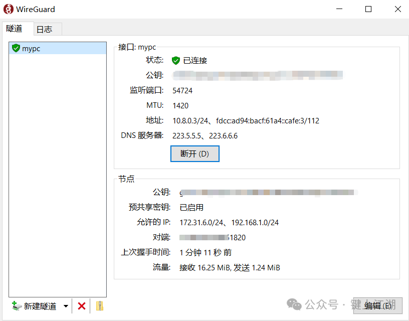 - 1. 在 wg-easy 创建 PC 客户端(如 mypc),下载配置 mypc.conf。
