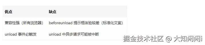 • 避免在 unload 中执行复杂逻辑或异步请求