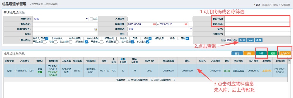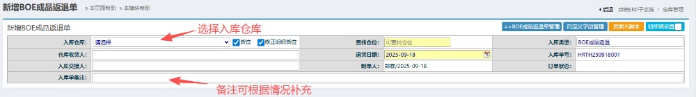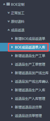 5.提交完成后,回到左侧功能菜单找到“BOE成品返退单入库”。