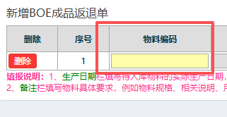 1. 进入ERP系统之后,在左侧功能菜单里点击“BOE定制”,点开“成品返退”,点击“新增BOE成品返退单”。
