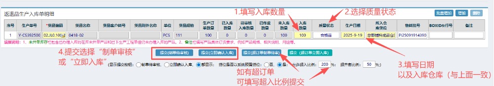 5.提交之后,回到左侧功能菜单里找到“返退品生产入库管理