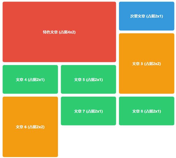 <div class="tertiary">文章 8 (占据2x1)</div>