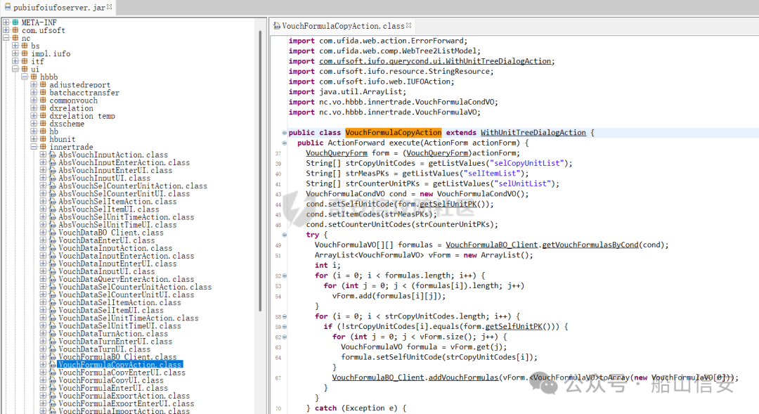 VouchFormulaCopyAction中的关键execute方法完整代码如下