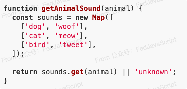 function getAnimalSound(animal) {