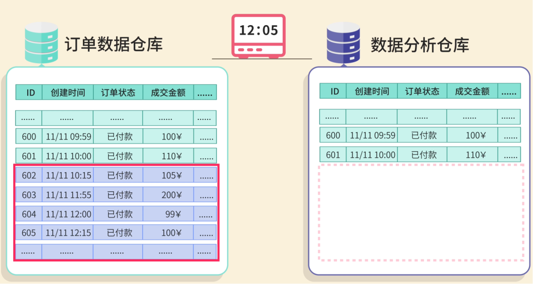 第一天上班,老板就交给你一个艰巨的任务:定期把公司的订单数据同步到数据分析仓库。