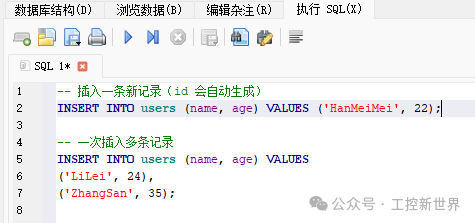 8. 在 执行 SQL 里运行以下语句插入一些测试数据