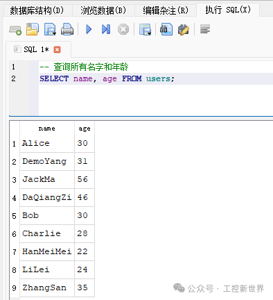 • 排序:按 age DESC → Charlie(35)、Bob(30)