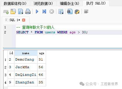 • 条件:只要 age >= 30 → 剩下 Bob(30)、Charlie(35)