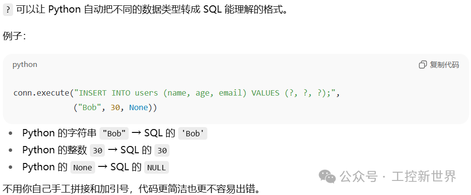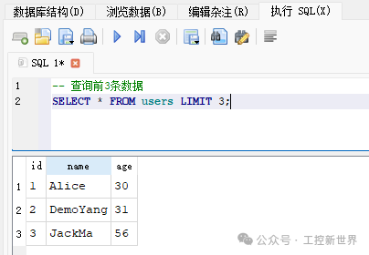 输入数据(例如:id = 1name = 'Alice'age = 30