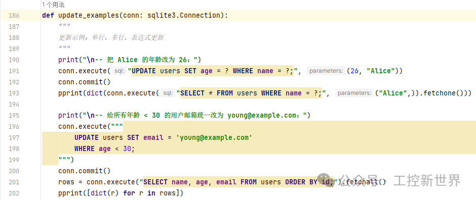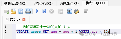 -- 给所有年龄 < 30 的用户邮箱统一改为 young@example.com: