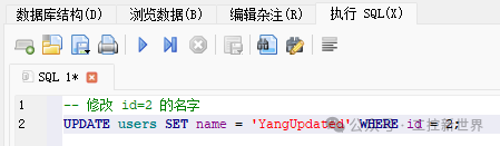 UPDATE users SET name ='YangUpdated' WHERE id =2;