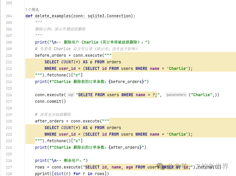 用标准库 sqlite3在本地创建 SQLite 数据库文件,并完成:建库/建表 → 插入数据 → 查询 → 更新 → 删除,全流程示例。