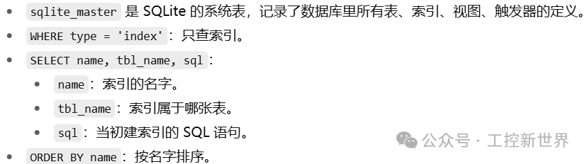 数据库文件:数据库的所有数据存储在一个 .db 或 .sqlite 文件中。SQLite 是一个以文件为基础的数据库引擎每个数据库都是一个普通的磁盘文件,所有的数据和结构都存储在这个文件中。