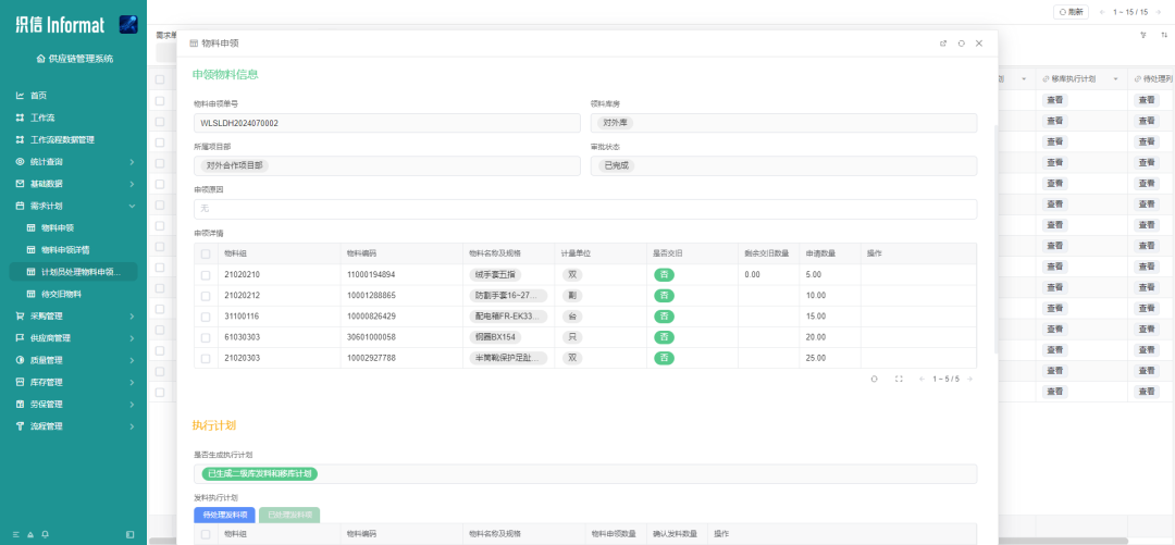 库存和在途物料的核查:系统会检查当前库存记录,核算已有的库存量,并将已经采购的在途物料计入考虑。如果库存中有足够的物料来满足需求,系统将不会生成采购订单,反之则会产生物料采购需求。